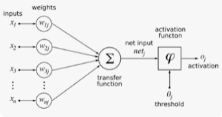 인공신경세포는 하나의 신경세포가 수행하는 기능을 수학적 함수로 정의한 것이다. 입력 값에 대하여 입력값 마다 주어지는 가중치를 곱하여 더하고, 활성화 함수(activation function)를 사용하여 역치 수준에 맞추어 출력을 결정한다. 이 때 활성화 함수는 인공신경세포의 특성을 결정하게 된다. 활성함수는 계단함수, 부호함수, 선형함수, 시그모이드 함수, 하이퍼탄젠트 함수, ReLU 함수가 있다. 그 중 미분이 가능한 시그모이드함수, 하이퍼탄젠트 함수를 자주 사용하며, 최근에는 ReLU 함수도 많이 사용된다고 한다.