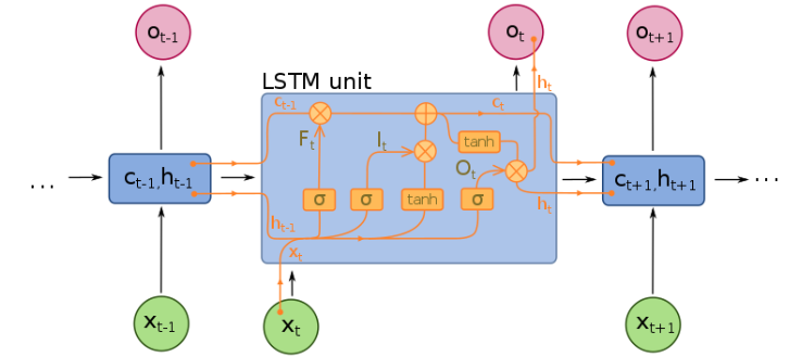 LSTM은 망각게이트(forget gate)와 입력게이트(input gate)를 통해 이전 셀의 정보를 어느정도 잊어버리고, 어느정도 추가할지를 조정한다. 망각게이트는 활성함수로 시그모이드함수를 사용하며, 입력게이트는 하이퍼탄젠트 함수를 사용한다. 이를 통해 셀 상태를 갱신하고, 출력 계산 부분에서는 출력 게이트(output gate)를 이용하여 셀의 출력과 출력층의 결과값을 계산한다. 출력게이트는 활성함수로 하이퍼탄젠트 함수를 사용하며, 출력층의 결과를 계산할 때는 softmax 함수를 사용한다.